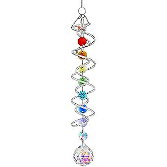 SQCLV17.7in Colorful Gazing Ball Spiral Tail,Crystal Wind Spinner Sun Catcher,Double-Spiral with Octagonal Beads and Chain,Rainbow Crystals Hanging fo