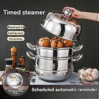 Stainless Steel 3-Layer Steamer Pot Set with Mechanical Timer, Anti-Dry Burning, and Visual Lid - Kitchen Cookware Tools for Cooking and Steaming - 1