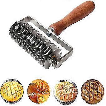 Stainless Steel Dough Lattice Top Cookie Pie Pizza Bread Pastry Crust Roller Cutter,wood Handle