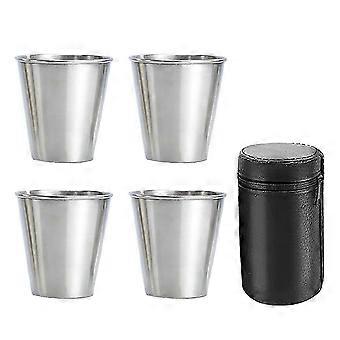 Stainless Steel Shot Cups, Set of 4 Cups, Metal Shot Glasses, Stackable, Hip Flask Small with Leath