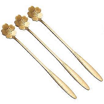 Stainless Steel Spoon for Mixing Drinks with Long Handle 9Pcs Golden