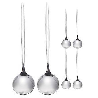 Stainless Steel Spoon Set Dining Table Spoons Silver Curved Design For Household Various Dining Occasions 6Pcs