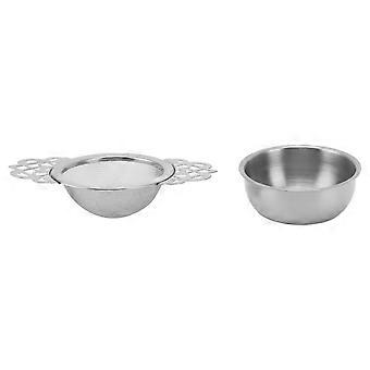 Stainless Steel Tea Strainers with Drip Bowl Double Handles Reusable Fine Mesh Tea Filters for Loose Leaf Herbal Kitchen Silver