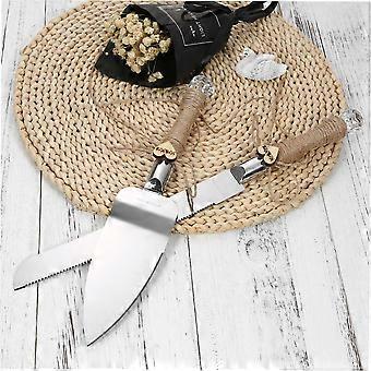 Stainless Steel Wedding Cake Knife & Server Set Crystal Handles Cake Cutter with Packing Box for Wedding Anniversary Reception--Rustic Lace