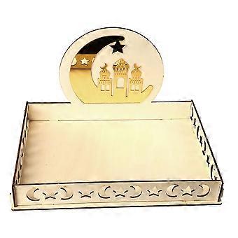 Star Moon Engraved Wood Tray For Eid Mubarak Dessert Serving 1Pack