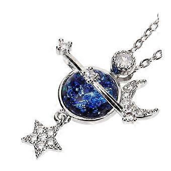 Sternen Planet Anhänger Halskette Damen Eleganter Glänzender Modeschmuck für Besondere Anlässe in Silber