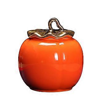 Storage Use Ceramic Can Pumpkin Shape Tea Can 2Pcs Red Sealed Canisters