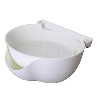 Strainer Bowl 2 Layer Fruit Colander Basket Plastic with Phone Bracket for Kitchen Food White