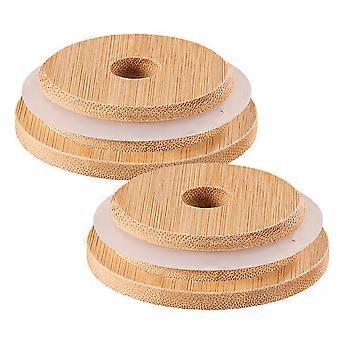 Straw Lid Bamboo Jar Lid For Home Use Light Brown Sealed 2Pcs