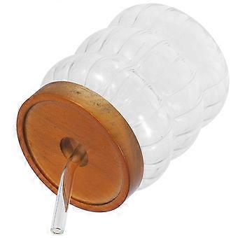 Striped Glass Cup for Drinking 1Set Glass and Wood Material with Straw