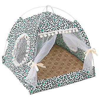 Summer Cat Small Tent Dog Kennel Detachable And Washable Folding Pet Kennel Tent Nest - Leopard Gree