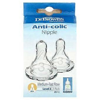 Dr. Brown's, Anti-Colic Nipple, 6 Months +, Medium-Fast Flow, 2 Pack Dr. Brown's