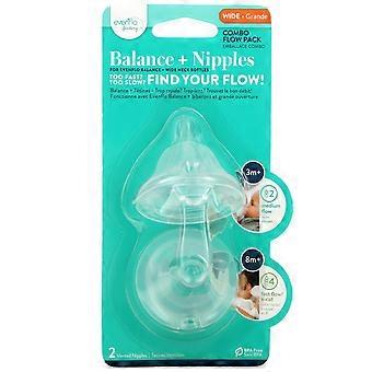 Balance + Nipples, Combo Flow Pack, Wide, 3+ Months, Medium, 2 Vented Nipples Evenflo Feeding