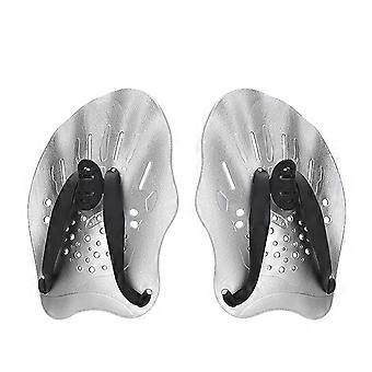 Swimming Hand Paddle - Silver Pack of 2 Training Gloves with Strap for Beginners & Professional Athletes