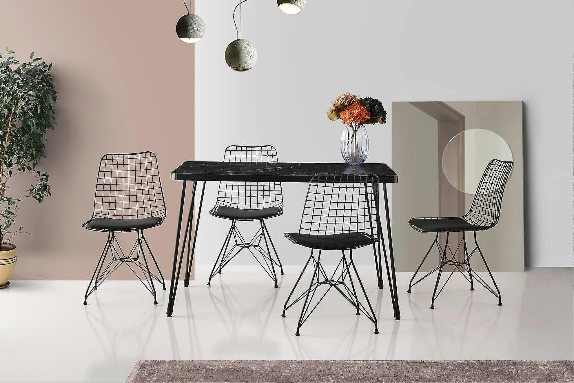 Den eleganta och moderna designen på vårt matbord gör att det smälter in sömlöst i vilken inredning som helst. De eleganta svarta färgerna utstrålar sofistikering och skapar en fängslande kontaktpunkt i din matplats. Dess minimalistiska estetik ger en touch av elegans, vilket gör den till ett perfekt komplement till både moderna och traditionella miljöer.