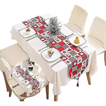 Table Runner Red Christmas Tartan Cotton Home Tablecover Decorative Washable Tassel Table Runner For