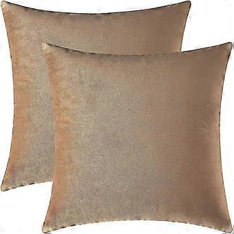Set Of 2 Cozy Velvet Square Decorative Throw Pillow Covers For Couch And Bed, Tan, 18 X 18 Inches