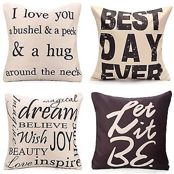 Square English Letter Cotton Linen Pillow Case - Throw Cushion Cover For Home Decor Ebox