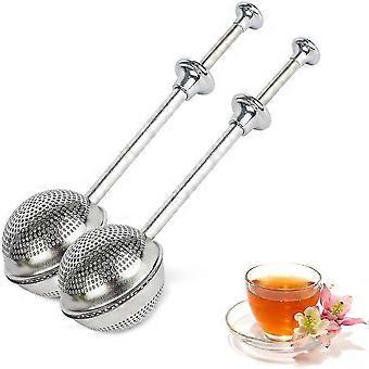 Tea Ball Infuser Strainers Long-handle, Stainless Steeltea Filter For Loose Leaf Tea And Mulling Spices, Ball Shape Push Style Tea Strainer Set Of 2