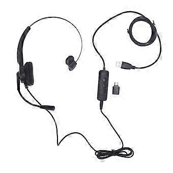 Telephone Headset USB Plug Monaural Support USB to USB C 3.5mm Connector Customer Service Headphone with Mic for PC Laptop Tablet