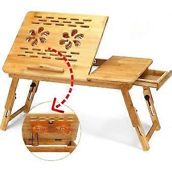 TEMPSA Laptop Table USB Fan Bed Table - PC Tablet Holder Drawer - Foldable Bamboo