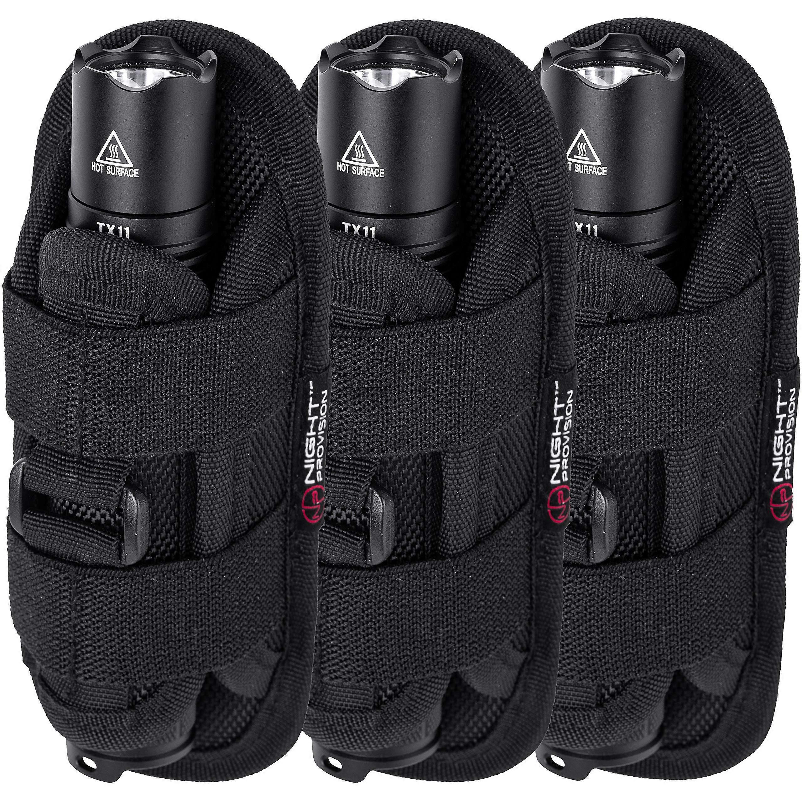 TH1 Tactical Flashlight Holster Duty Belt Pouch Stretchable Rotatable Clip 360 Degree Holder for Police Military Security Belt (3 Pack)