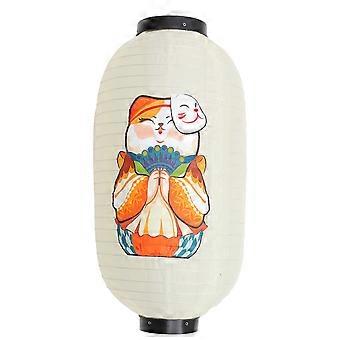 The **Japanese Silk Lantern Pendant with Orange Cat Design** is a beautiful and traditional decorative piece that brings a touch of authentic