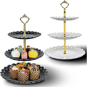 Three-layer Cake Snack Display Tray Food Stand (black + White) 2 Pieces