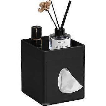 Tissue Box Cover, PU Leather Square Tissue Box Holder with Storage Tray