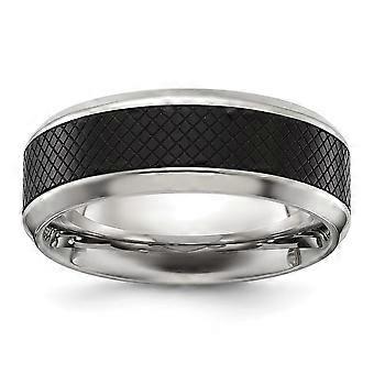 Titanium Polished Black Ip Plated Textured Center 8mm Band-Band Style Ring for Women and Men - Ring Size: 8 to 13