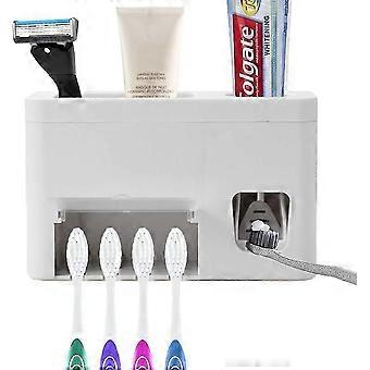 Toothpaste Squeezer Toothbrush Holder Set with Dust Cover, 3-in-1 Wall Mount Bracket with 1 Storage Compartment Bathroom Accessories