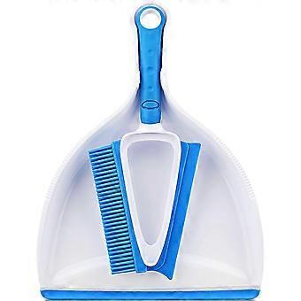 TPR Bristle Brush and Squeegee with Dustpan Set, Portable Cleaning Brush and Combination Dustpan, Dustpan and Brush Set Blue