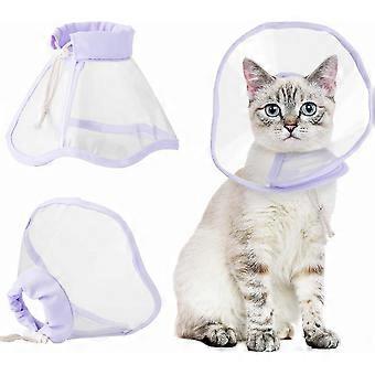 Transparent Recovery Collar for Cats, Adjustable Drawstring Cone, Prevents Licking and Scratching, Post-Surgery Protection
