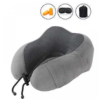 Travel Pillow, Neck Pillow, Memory Foam Travel Pillow with Eye Mask, Ear Plugs, Carrying Bag Included, Suitable for Plane and Train Gray