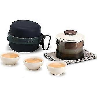 Travel Tea Set, Portable Chinese Kung Fu Tea pot, 1 Teapot 3 teacup Set with Tea Infuser, Portable All in One Gift Bag for Outdoor Picnic Business Hot