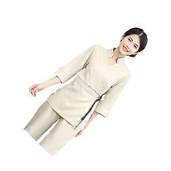 Two-Pieces Costume for Work Beautician Tops for Working Use 2Sets Beige