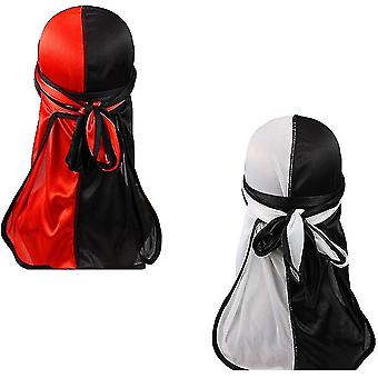 Two Tone Men Silky Durag Hip-hop Rapper Doo Rag,45 Inch Long Tail,360 Waves Du Rag Headwraps(2/3 Packed)