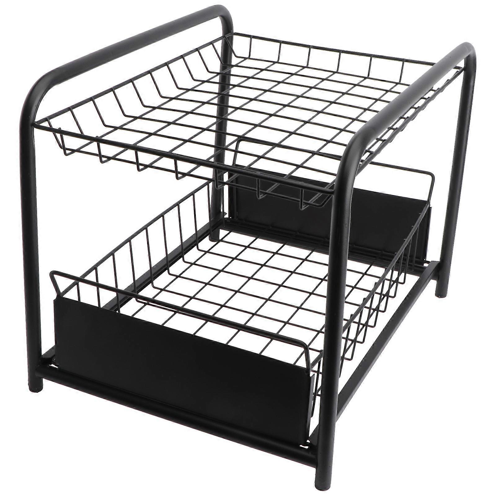 Under Sink Storage Rack with Sliding Baskets for Kitchen Made of Carbon Steel Black 12.5x8x16 Inch