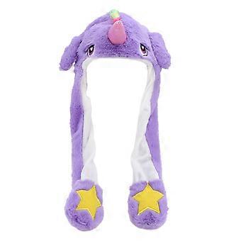 Unicorn Plush Hat Movable Ears Hat for Wearing Use 2Pcs Purple