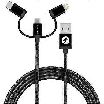 USB-A to Lightning, USB-C and Micro-USB 1.5m Black