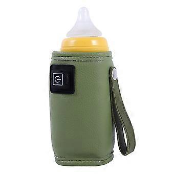 USB Baby Bottle Warmer Three Level Temperature Adjustment Hook and Loop Design Portable Milk Bottle Heater Leather Green