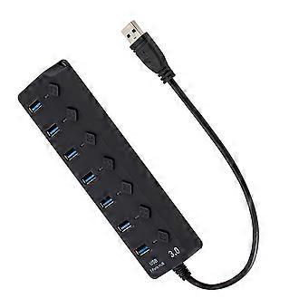 USB Hub Multi Device Connector with Individual Switch and Portable Design for Laptop, PC, Tablet, and Smartphone – Black