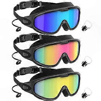 UV400 Swim Goggles 3-Pack Wide View Anti-Fog Leak-Proof for Men & Women
