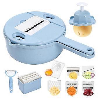 [14 in 1 Vegetable Slicer] You get a Multi-Function Vegetable Slicer with 5 different blades. 2mm . 2mm. 3mm julienne slicer. Wavy Slicer. graters. Peeler. hand protector. Peeler Skin Remover/Cleaning brush. [Easy to Clean and Store]Multi function vegetable cutter can be fully disassembled with ease and the included blade box means that worrying about storage and organization is a thing of the past. Plus this kitchen gadget is dishwasher safe. If the blade of salad slicer stained with vegetable pigment, it can be cleaned with a small amount of vegetable oil. [High-quality Materials] Multipurpose vegetable slicer equipped with professional hand protectors, really a very solid vegetable slicer, the upgraded Mandoline slicer professional is made of Free safety material. The 5 blades are food grade 420 stainless steel blades, which are non , tasteless, safe and . [Replaceable Design]This multifunction food chopper professional with a blade box to place the blade. Vegetable slicer is very convenient and simple to setup. the product can be stacked to save more space, never mess up and all in order. Color: Blue Material: plastic Package Contents: 1 set * Vegetable Choppers Only the above package content, other products are not included. Note: Light reflection and different displays may cause the color of the item in the picture a little different from the real thing. The measurement allowed error is +/- 1-3cm.