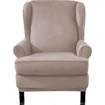 Velvet Stretch Wingback Chair Sofa Slipcover 2-Piece Stretch Sofa Cover Furniture Protector Couch Soft with Elastic Bottom (Khaki)