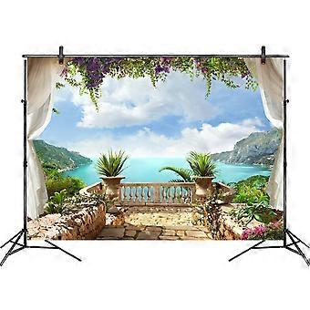 Vintage European Garden Flower Backdrop Sea Scenic Photo Background Studio Props