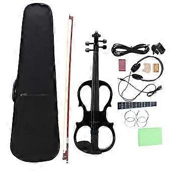 Violin Set 4/4 Electroacoustic Solid Ebony String Instrument with Tuner Bow AccessoriesBlack