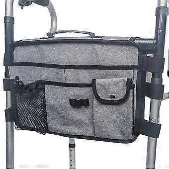 Walker Bag, Gray Foldable Waterproof Walker Organizer Pouch with 9 Pockets and Large Compartment for Wheelchair and Rollator, Tote Bag with Handle