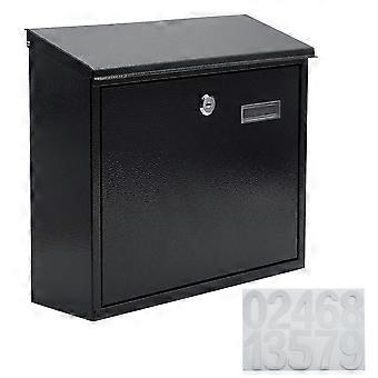 Wall Mount Mailbox with Lock Box for Letters, Parcels, or Key Storage, Black Steel