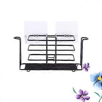 Wall Mounted Toothbrush Holder with Toothpaste Organizer, Iron Bathroom Storage Rack with Water Drainage, No Drill Easy Installation for Home Use